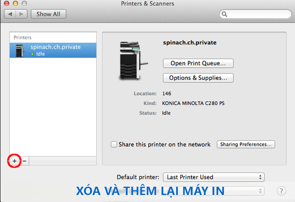 Đầu tiên là thao tác xóa máy in hiện tại: