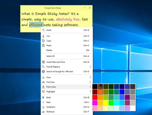 Simple Sticky Notes có thể tuỳ biến đổi nhiều màu phong phú