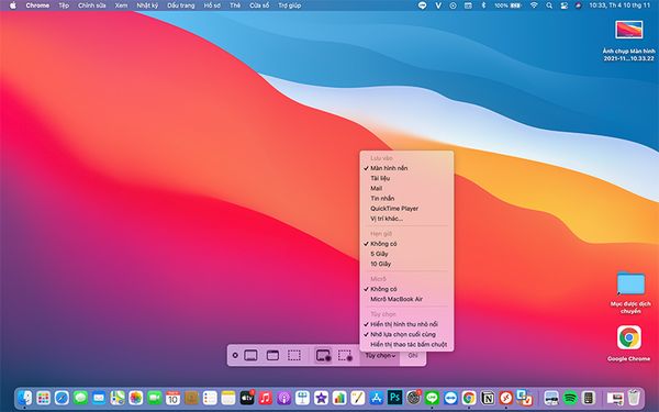 Để thực hiện được chụp màn hình trực quan và quay video màn hình bạn cần nhấn tổ hợp phím Command + Shift + 5.