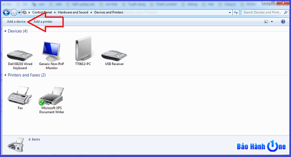 Sau đó bạn vào: Control Panel chọn View Devices and Printers