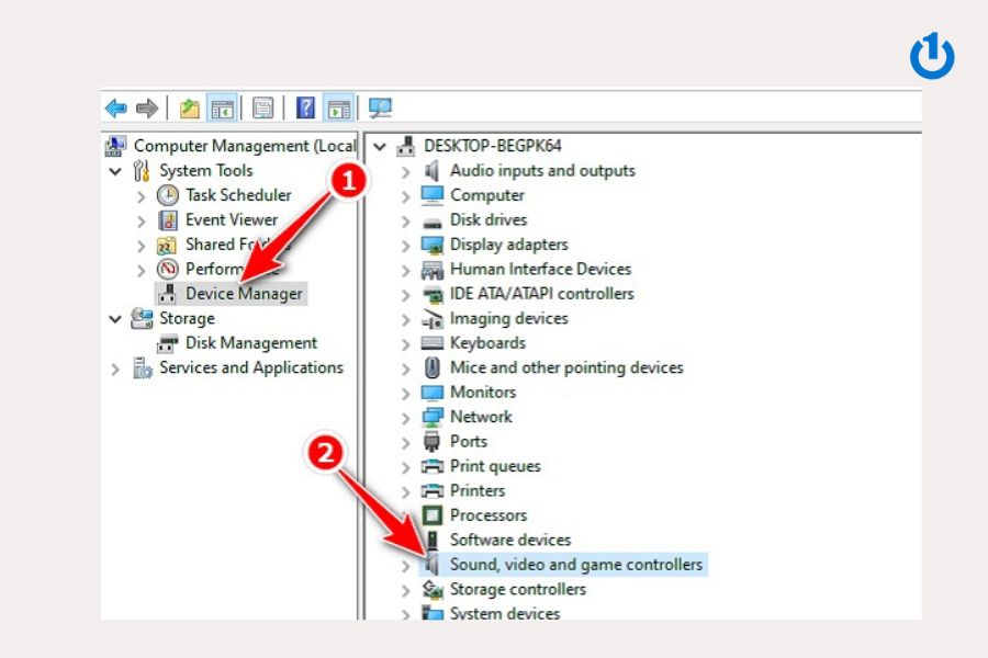 - Bước 2: Trong Computer Management, tiếp tục click chọn Device Manage > Sound, video and game controllers;
