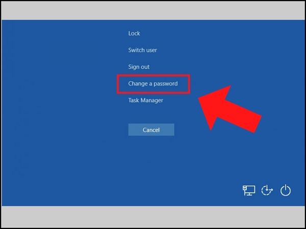 Bước 2: Bạn nhấn tổ hợp phím Ctrl + Alt + Del –> nhân tiếp Change a password, giờ bạn chỉ việc điền password cũ, sau đó thay bằng password mới là xong.