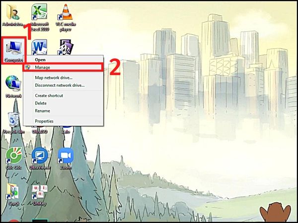 Bước 1: Đưa con trỏ chuột phải vào biểu tượng My Computer trên màn hình desktop –> chọn Management