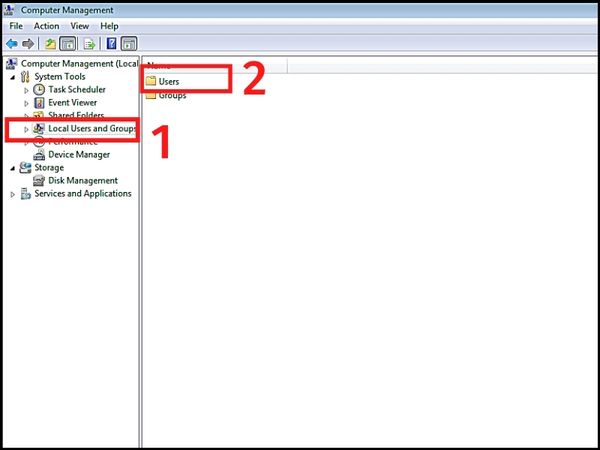 Bước 2: Chọn tiếp Local Local Users and Groups –> chọn Users.