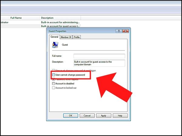 Bước 3: Sau đó bên phải màn hình sẽ xuất hiện có số tên người dùng. Điều bạn cần làm là click đúng vào tài khoản mình đang dùng và bỏ dấu tích ở mục User cannot change password rồi chỉ cần nhấn OK là được.