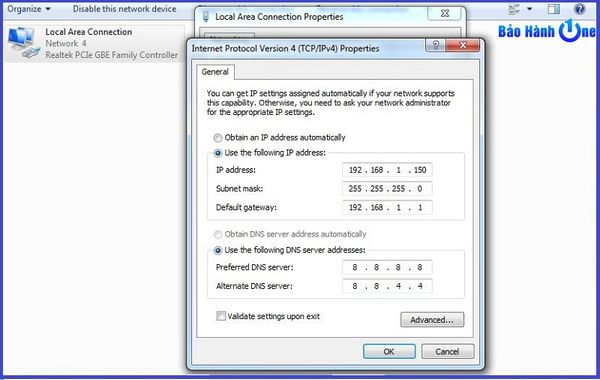 Trong một số trường hợp do DNS lỗi nên mặc dù bạn Ping vẫn có tín hiệu Internet nhưng không vào được bất kỳ trang web nào, lúc này bạn hãy tích vào ô Obtain folling DNS Server Addresses để tự động chọn DNS nhé.