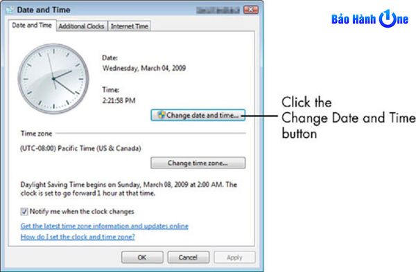 Đồng hồ chắc hẳn là công cụ không thể thiếu để bạn có thể sắp xếp thời gian công việc sao cho hợp lý nhất. Chúng được tích hợp trên hệ điều hành máy tính để bạn có thể dễ dàng theo dõi mỗi khi bật laptop lên. Thế nhưng bất ngờ một ngày đồng hồ trong máy tính bạn chạy không đúng, bạn cảm thấy khó chịu nhưng không biết cách nào để chỉnh lại giờ đúng. Bảo Hành One sẽ giúp bạn chỉ ra cách khắc phục nhé!