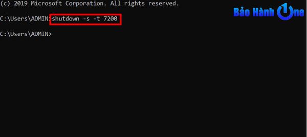 Bước 1: Nhấp đồng thời tổ hợp phím Windows + R để mở hộp thoại RUN , điền CMD => Enter và nhập lệnh “Shutdown-s-t-7200”