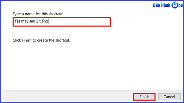 Đặt tên cho shortcut > Bấm Finish để tạo shurtcut đặt giờ tắt máy tính