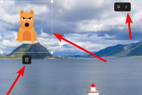 Muốn sử dụng sticker nào thì bấm vào hình dán đó. Bạn có thể thay đổi vị trí và thay đổi kích thước cho hình dán trên màn hình desktop. Muốn gỡ thì bấm vào hình dán đó > bấm biểu tượng thùng rác.