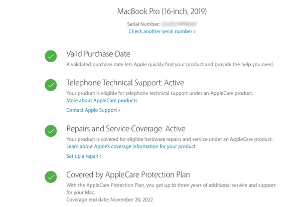 Kiểm tra thời hạn bảo hành còn lại Macbook Pro 2019 cũ để được hưởng chế độ Apple Care