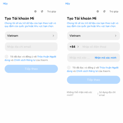 Nếu bạn đã có tài khoản, bạn có thể đăng nhập bằng ID tài khoản MI, số điện thoại, email hoặc tài khoản Facebook. Nếu chưa có tài khoản, bạn có thể tiến hành đăng ký tài khoản mới theo hướng dẫn trên ứng dụng.