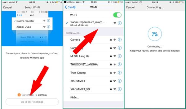 - Bước 6: Nhấn vào "Go to Wi-fi settings" để vào cài đặt mạng wifi. Đảm bảo rằng điện thoại của bạn đã kết nối với mạng wifi mà bạn muốn mở rộng tín hiệu. Sau khi chọn kết nối với mạng wifi mà Xiaomi Wifi Repeater Pro phát ra, quay lại ứng dụng Mi Home để hoàn tất quá trình cài đặt.