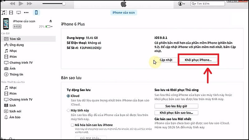 Bước 3: Chọn Update hoặc Restore trong iTunes/Finder.