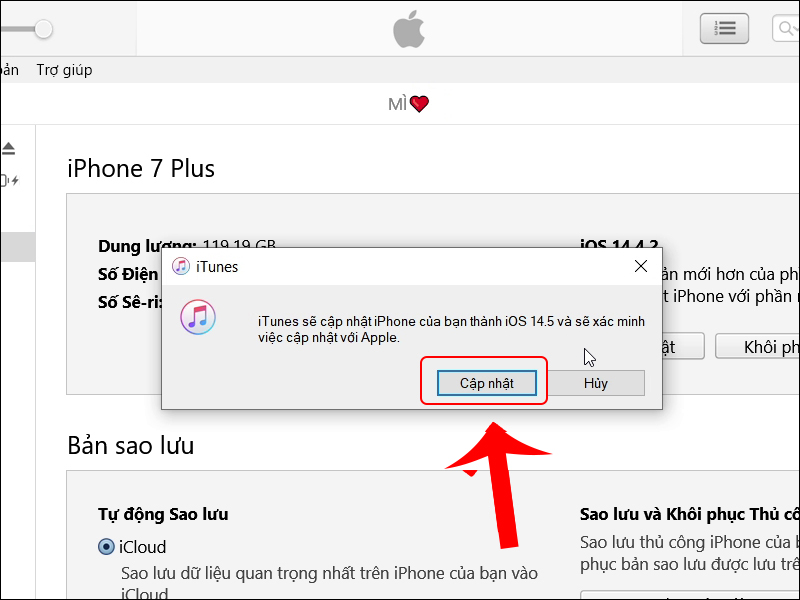 Bước 3: Nhấn vào Check for Update (Kiểm tra bản cập nhật), iTunes sẽ tìm và thông báo nếu có bản cập nhật iOS mới.