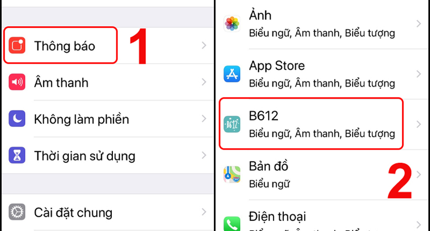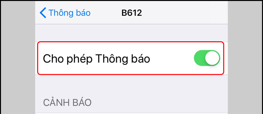 Bước 2: Chọn ứng dụng và kéo tắt mục Cho phép thông báo.