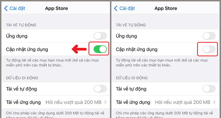 Bước 2: Tìm mục Tải về ứng dụng và kéo để tắt chức năng tải tự động.