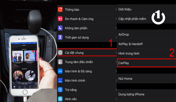 Bước 2: Sau khi đã kết nối bằng dây sạc cổng USB bạn vào ứng dụng Cài đặt của iPhone → Tiếp tục chọn vào mục Cài đặt chung → Tiếp tục chọn vào CarPlay → Sau đó thông báo xuất hiện trên màn hình và bạn chọn YES và tiếp tục thực hiện theo hướng dẫn trên màn hình Ô tô là sẽ hoàn tất.