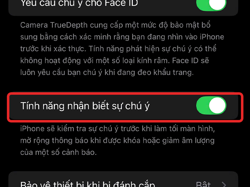 Tắt tính năng Nhận biết sự chú ý (Attention Aware Features)