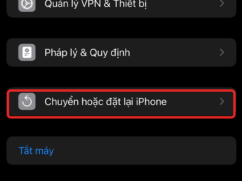 - Bước 2: Cuộn xuống cuối cùng và chọn Chuyển hoặc đặt lại iPhone.