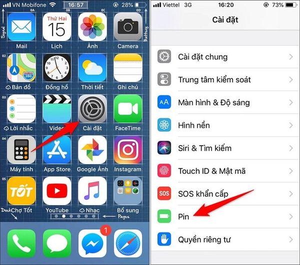 Bước 1: Sử dụng tính năng quản lý của iPhone để theo dõi tình trạng pin