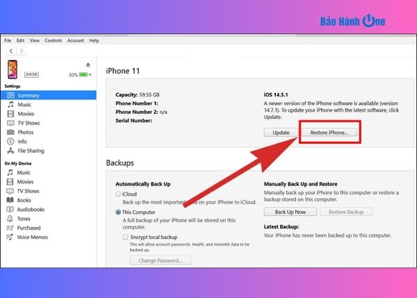 Đối với cách sửa lỗi điện thoại iPhone 11 bị sọc màn hình, restore lại máy cũng là một cách làm khá hiệu quả. Để thực hiện sửa lỗi bị sọc màn hình iPhone 11 bằng cách restore iPhone bằng iTunes, cần làm theo các bước sau đây!