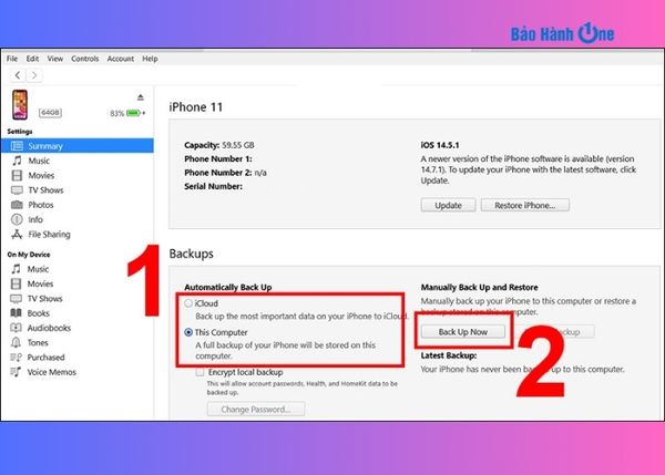 Với trường hợp cần sao lưu dữ liệu, tại mục Summany → chọn This Computer → chọn Back Up Now