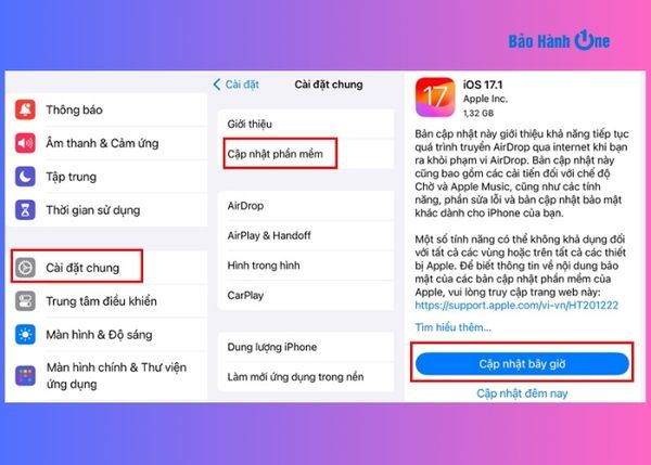 Đầu tiên truy cập vào ứng dụng Cài đặt → chọn Cài đặt chung → chọn tiếp Cập nhật phần mềm → Cuối cùng chọn cập nhật bây giờ và hoàn tất.