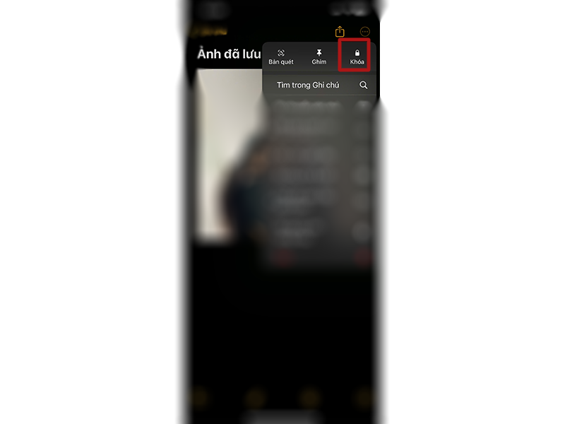- Mở ứng dụng Ghi chú, tìm đến ghi chú vừa lưu ảnh, nhấn vào biểu tượng ba dấu chấm ở góc trên và chọn Khóa (Lock).