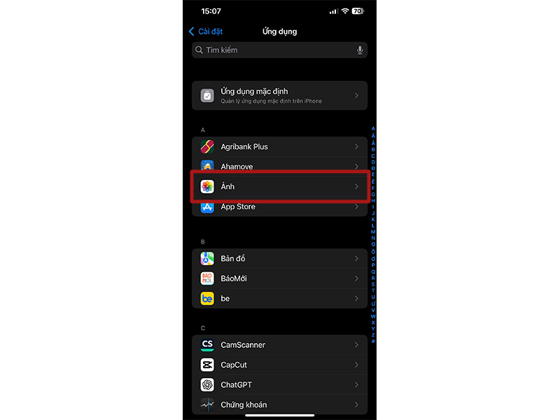 - Truy cập vào Cài đặt (Settings), sau đó cuộn xuống chọn mục Ảnh (Photos).