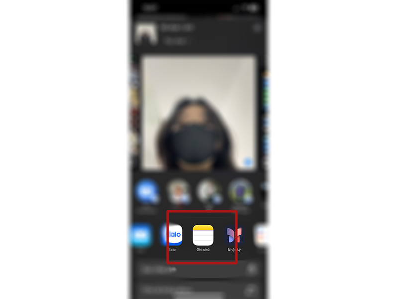 - Trong ứng dụng Ảnh, chọn những tấm hình cần bảo mật, nhấn nút Chia sẻ và chọn ứng dụng Ghi chú.