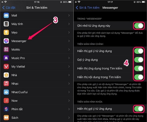 Bỏ chọn các mục hiển thị gợi ý để ẩn ứng dụng khỏi tìm kiếm từ Siri