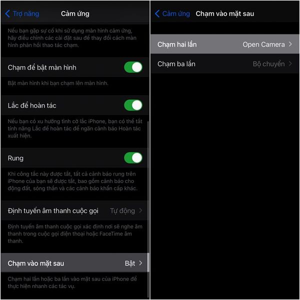 Chỉnh sửa Tác vụ tùy chỉnh với hai lần chạm để mở Camera