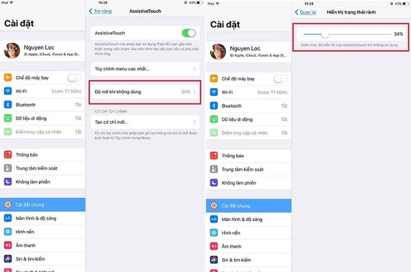 Sử dụng thanh kéo để tăng hoặc giảm độ mờ của nút Home ảo