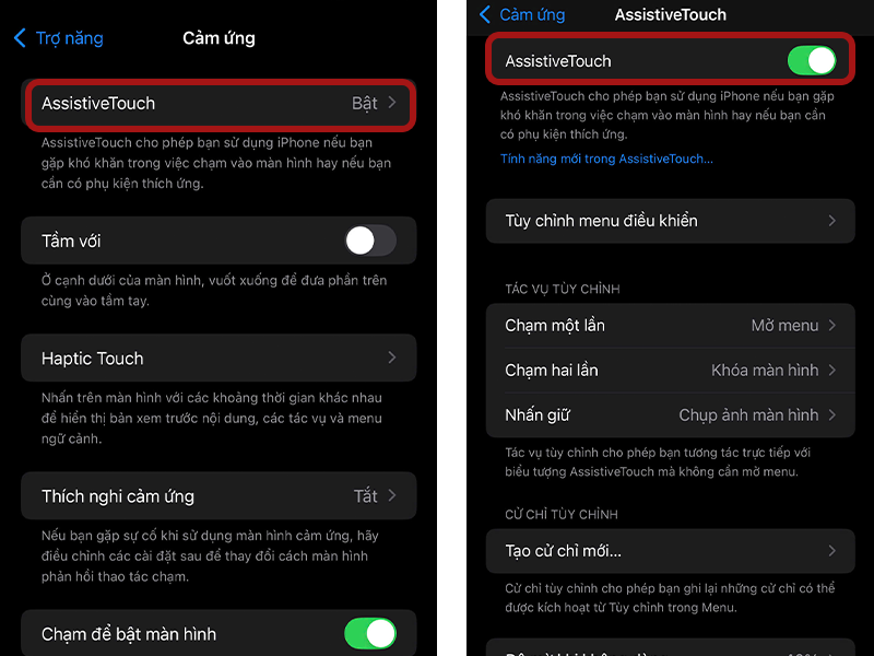 - Tắt và bật lại tính năng: Vào Cài đặt, tắt AssistiveTouch, đợi vài giây rồi bật lại để làm mới hệ thống nhận diện lệnh.
