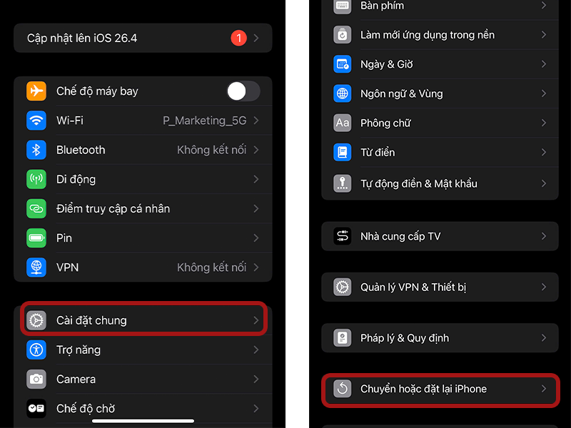 - Đặt lại tất cả cài đặt: Vào Cài đặt => Cài đặt chung => Chuyển hoặc đặt lại iPhone => Đặt lại tất cả cài đặt (không mất dữ liệu).