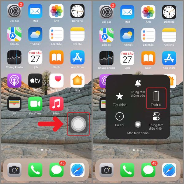 Sau đó bạn nhấn vào nút home ảo có trên màn hình → Chọn vào “Thiết bị”