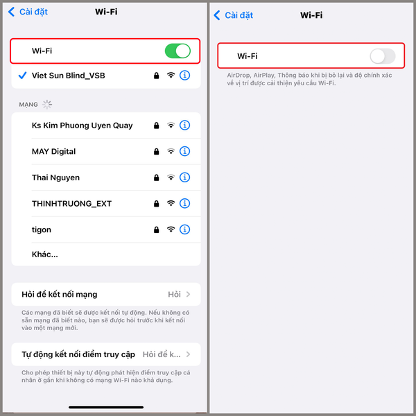 Nhấn nút wifi sang trái để tắt (Nút wifi màu xám là đã thực hiện thành công)