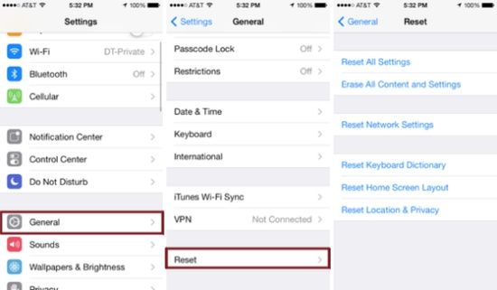 Đặt lại cài đặt trên thiết bị. Đây là một hoạt động đơn giản. Chỉ cần vào Cài đặt => Chung => Đặt lại. Tại đây bạn cần chọn Đặt lại tất cả cài đặt. Điều này sẽ không làm mất dữ liệu trên iPhone.