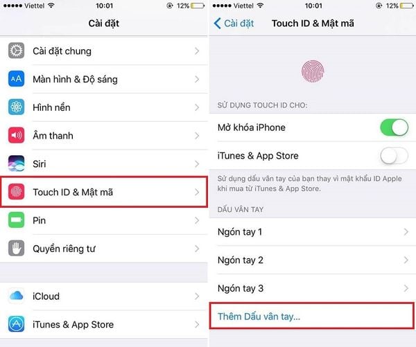 Từ thế hệ iPhone 5s trở đi đến iPhone 8 plus, Apple đã nâng cấp tính năng khởi khóa bằng vân tay hay còn gọi là: Touch ID. Lúc này, bạn hãy làm theo hướng dẫn của hệ thống để cài đặt vân tay để thực hiện việc mở khóa sau này. Lưu ý nên sử dụng ngón tay thuận tiện cho việc mở khóa sau này, thông thường là ngón trỏ và ngón cái.