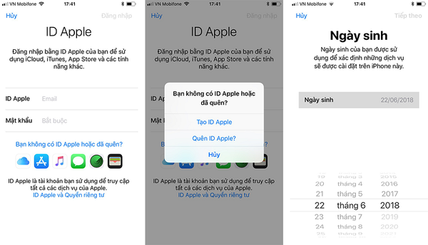 Đăng nhập ID Apple khi kích hoạt iPhone lần đầu