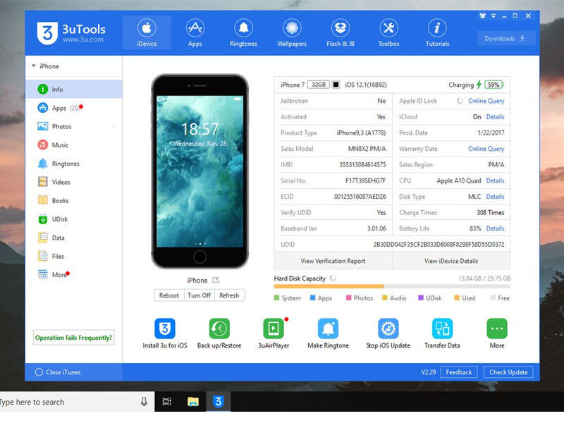- Dùng tính năng Reboot của 3uTools: Sau khi kết nối, tại giao diện 3uTools bạn chỉ cần nhấn vào nút Reboot để ra lệnh cho iPhone khởi động lại tức thì.