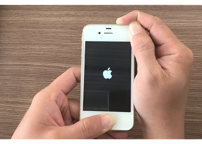 Một trong những cách sửa iPhone 5S hư mic nhanh chóng và đơn giản nhất đó là khởi động lại thiết bị. Quá trình khởi động lại sẽ giúp làm mới hệ thống và sửa chữa những lỗi nhỏ này một cách hiệu quả. Để thực hiện, bạn chỉ cần nhấn và giữ nút nguồn cho đến khi logo Apple xuất hiện trên màn hình là xong.