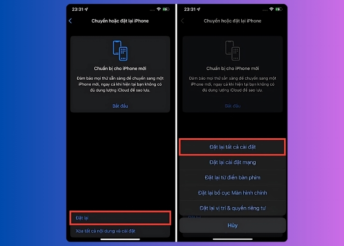 Nhấn chọn “Đặt lại” và “Đặt lại tất cả cài đặt”