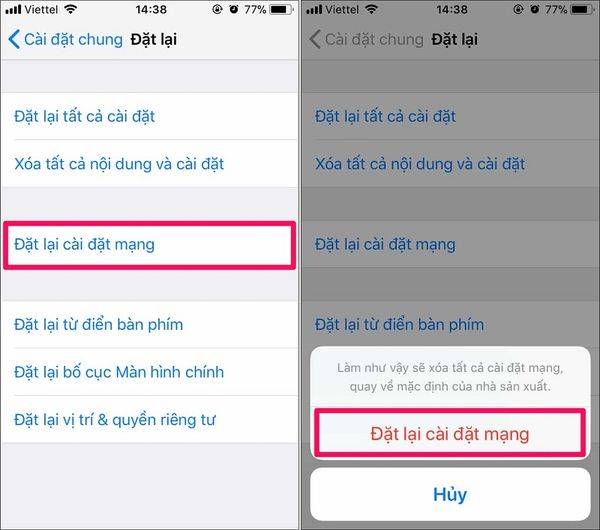 Cài đặt lại thiết lập mạng cho iPhone