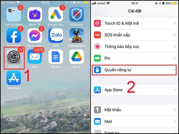 Bước 1: Mở Cài đặt → Quyền riêng tư