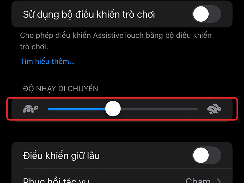 Chỉnh độ nhạy di chuyển: Cuộn xuống phần cuối trong cài đặt AssistiveTouch để tìm mục Độ nhạy di chuyển.