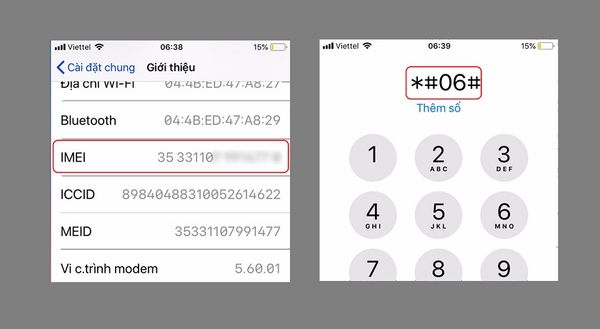 Ngoài ra, bạn cũng có thể kiểm tra số IMEI trực tiếp bằng cách nhập cú pháp số "*#06#" vào ứng dụng Điện thoại của iPhone. Sau khi bạn nhập, hệ thống sẽ ngay lập tức hiển thị số IMEI của thiết bị.