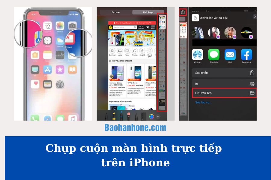 Thao tác thao các bước chụp cuộn màn hình iPhone