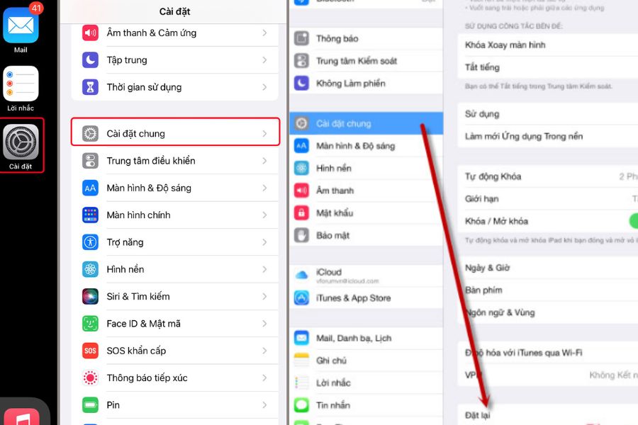 - Bước 2: Kế tiếp bạn chọn đặt lại rồi chọn đặt lại các cài đặt lúc này toàn thị thiết lập trên điện thoại Iphone sẽ bị mất đi nhưng những dữ liệu trong điện thoại sẽ được giữ lại.